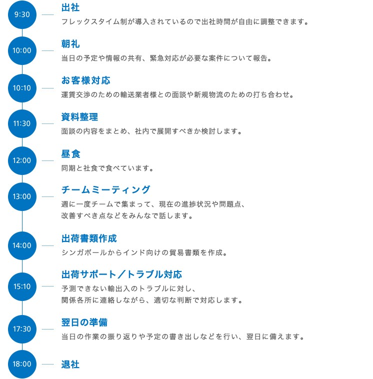 物流に関わる業務として、輸送業者との運賃交渉、海外拠点の出荷サポートやトラブル対応、新規取引における輸送ルートの設定、出荷書類の作成などの貿易実務を行っています。現在は、各船舶会社からの運賃の見積もりを元に、どの業者にするか、どのルートで運ぶかを選定することが私の役目です。